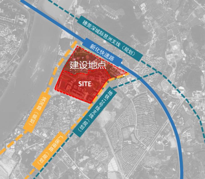 二期工程擬定選址位于一期工程建設(shè)用地北側(cè),北至新化快速南側(cè)、南至一期工程已征用地紅線、西至規(guī)劃濱河路、東至規(guī)劃的廣醫(yī)南路。