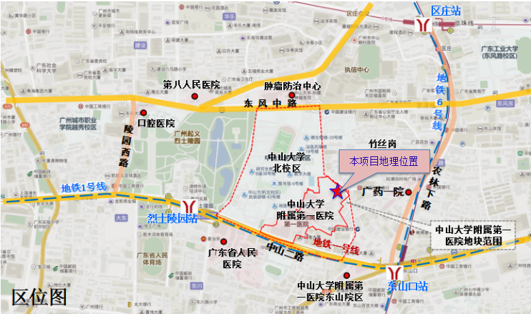 項目選址位于越秀區(qū)中山二路58號中山大學(xué)附屬第一醫(yī)院院內(nèi)北側(cè)地塊,緊鄰執(zhí)信南路。