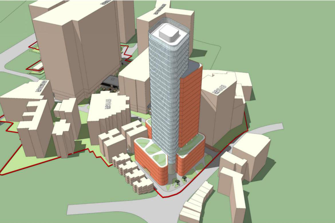 擬建的恒大醫(yī)療中心為一棟科教綜合樓,總建筑面積為56600平方米,其中地上建筑面積37800平方米,地下建筑面積18800平方米。該建筑由裙樓和塔樓組成,建筑高度約128米。建設(shè)內(nèi)容包括行政管理用房、住院病房、臨床培訓(xùn)用房、職工餐廳等。