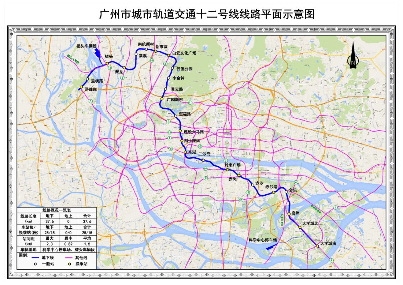 項(xiàng)目規(guī)模:線路全長(zhǎng)37.6km,全為地下線;設(shè)站25座,其中換乘站15座。最大站間距2.34km(廣園新村~恒福路區(qū)間),最小站間距0.82km(南航新村~新市墟站),平均站間距1.5km。全線設(shè)置一段一場(chǎng),分別為槎頭車輛段和和科學(xué)中心停車場(chǎng)。投資估算:382.41億元。